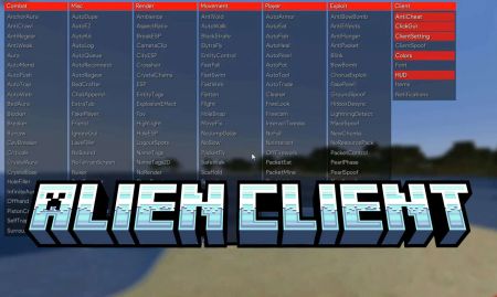 Alien Client заточен под анархию и хардкорные сервера, где нет правил, здесь важны скорость реакции и автоматизация рутины, особенно в ближнем бою через кристалы Эндера, поэтому весь функционал клиента крутится вокруг максимально агрессивного кристального