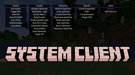 Osmium Client заточен под кристальные дуэли, в нем все для точной работы мечом и тотемом в активной руке. Система модулей выстроена вокруг автоматизации, от подбора зелий до отключения щитов у оппонента, и особенно раскрывается в кристальном режиме.