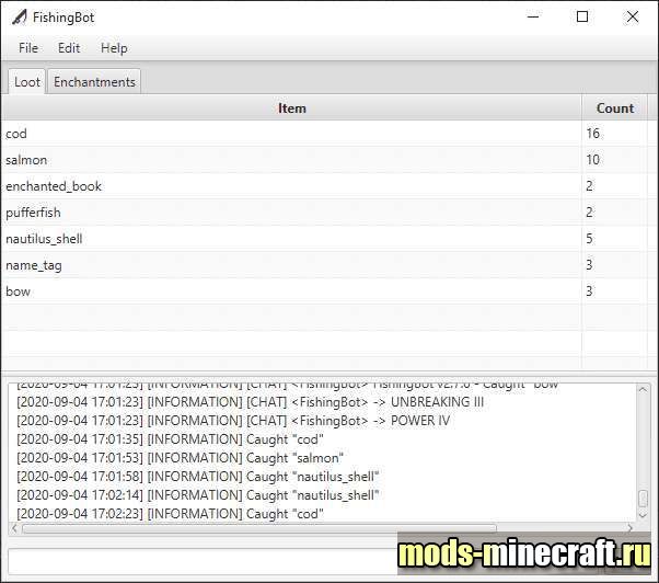 Рыбалка полностью автоматизирована от заброса до сбора улова. Когда на крючок клюет, программа сама подсекает и перезабрасывает снасть, в консоли при этом отображается вся добыча и рост уровней опыта, все это можно контролировать и проверять через простые текстовые команды.