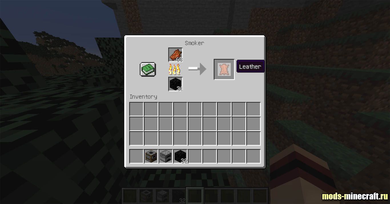 Процесс переработки требует лишь наличия правильного оборудования и немного топлива. Загрузка плоти в коптильню дает на выходе обычную кожу, а использование стандартной печи превращает сырье в коричневый краситель. Это маленькое изменение избавляет от рутинного разведения коров и долгих поисков какао-бобов в джунглях, позволяя сэкономить время для масштабных построек.