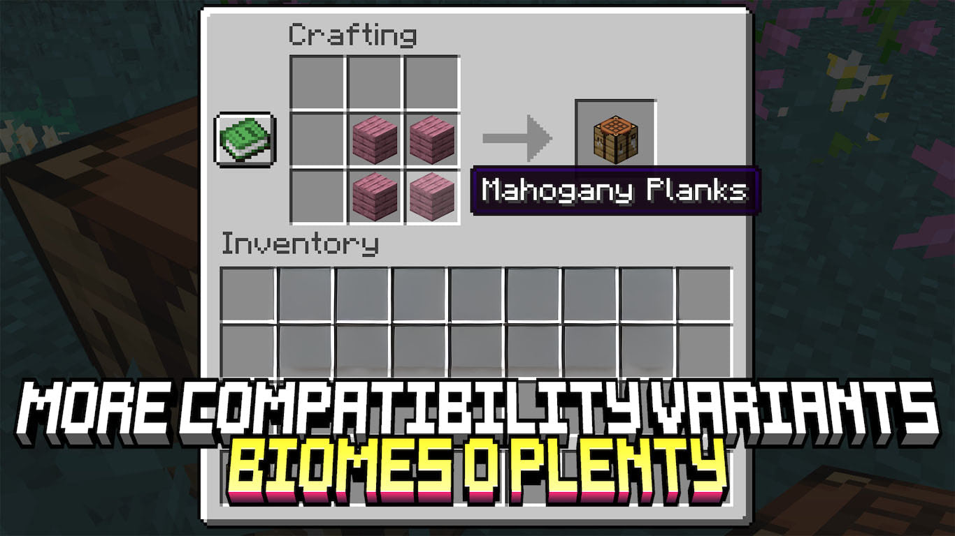 Когда устанавливаешь Biomes O’ Plenty ради редкой древесины и добавляешь моды из серии More Variants для разнообразия форм, часто сталкиваешься с неприятным сюрпризом в верстаке. Игра отказывается принимать новые красивые доски в рецептах для столов или