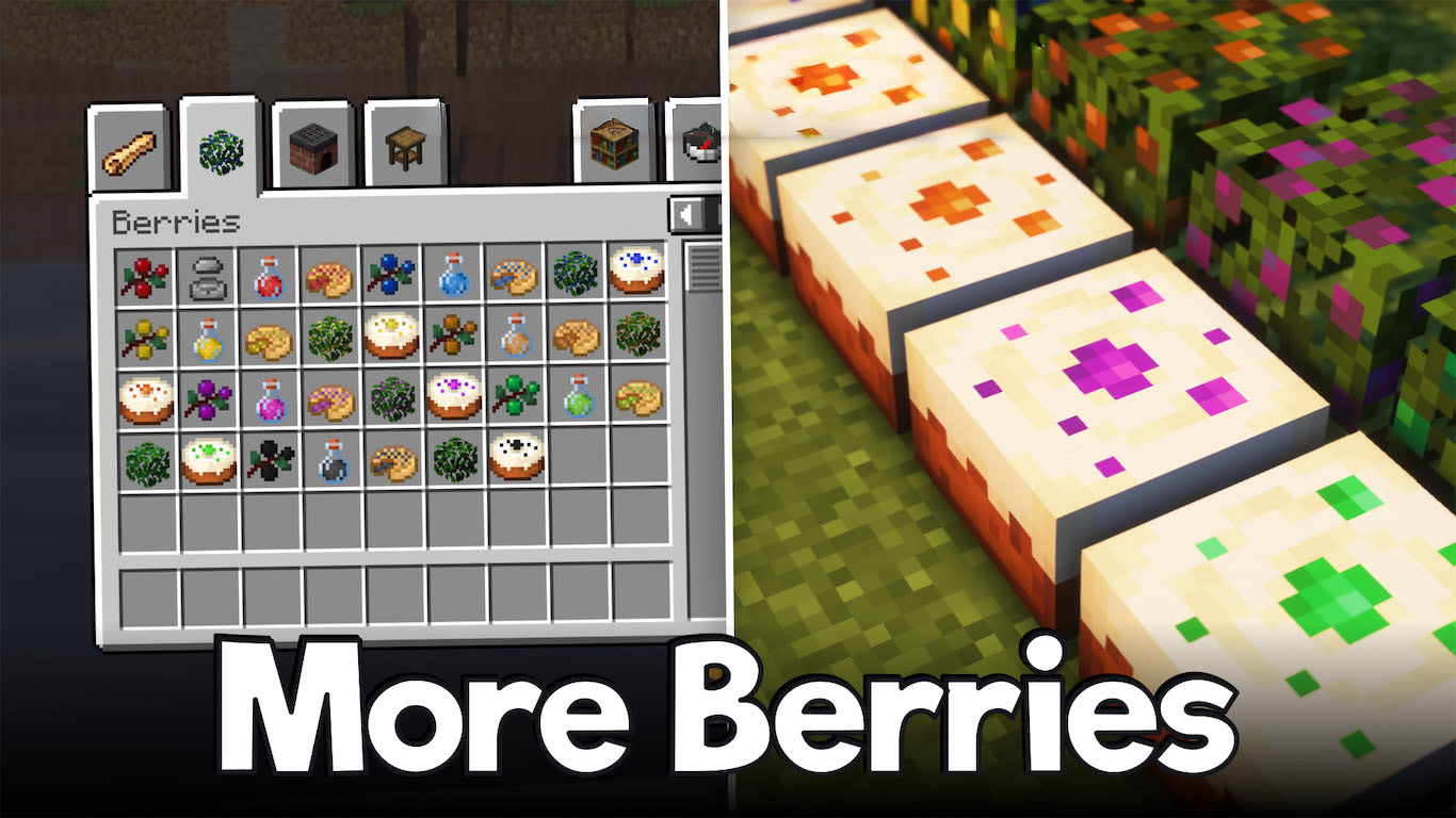 В ванильной версии мы привыкли видеть только красные ягоды где-то в тайге, но этот мод исправляет ситуацию и добавляет сразу шесть новых видов. Теперь прогулка по березовой роще, джунглям или даже болотам обретает смысл, ведь везде можно наткнуться на