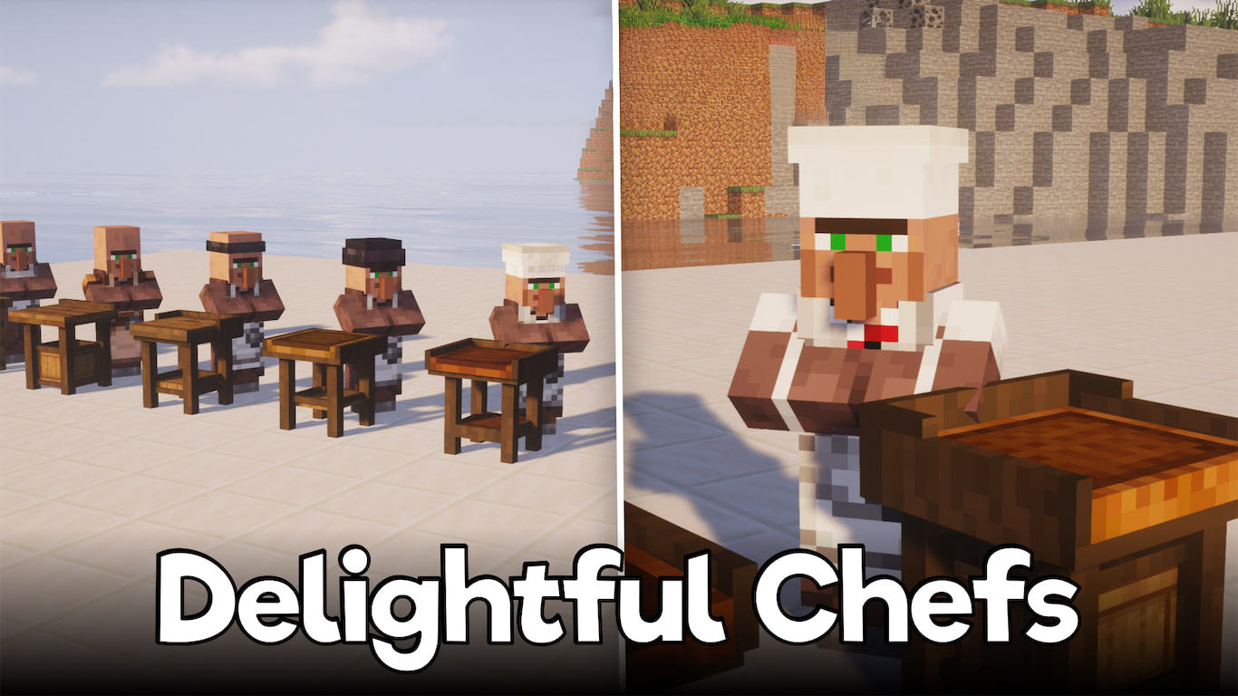 Farmer’s Delight отлично расширяет кулинарию, но кухня часто кажется пустой без персонала. Аддон Delightful Chefs исправляет это и добавляет жизни в процесс готовки, вводя шесть новых профессий для жителей. Теперь достаточно поставить нужный блок, чтобы