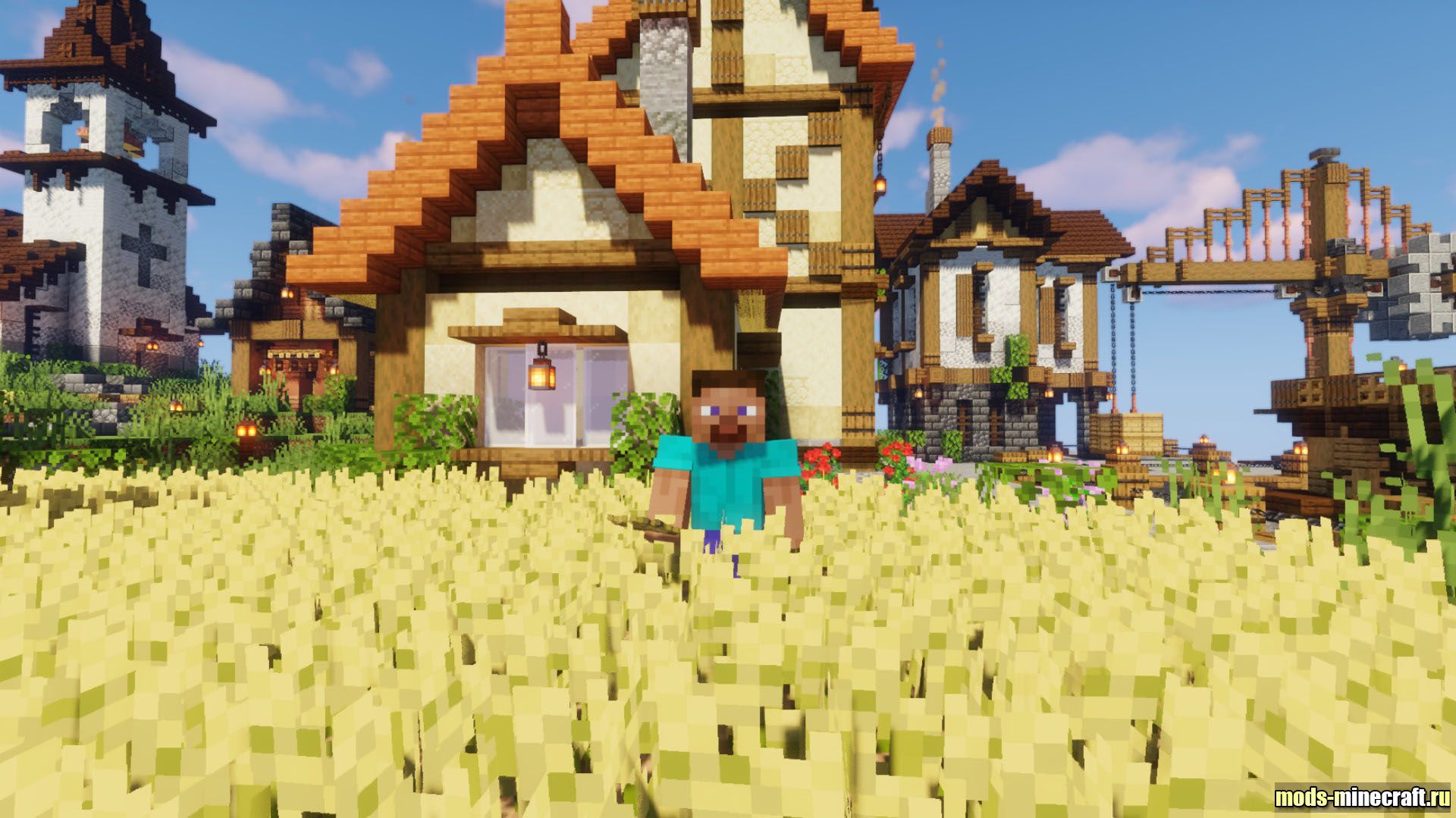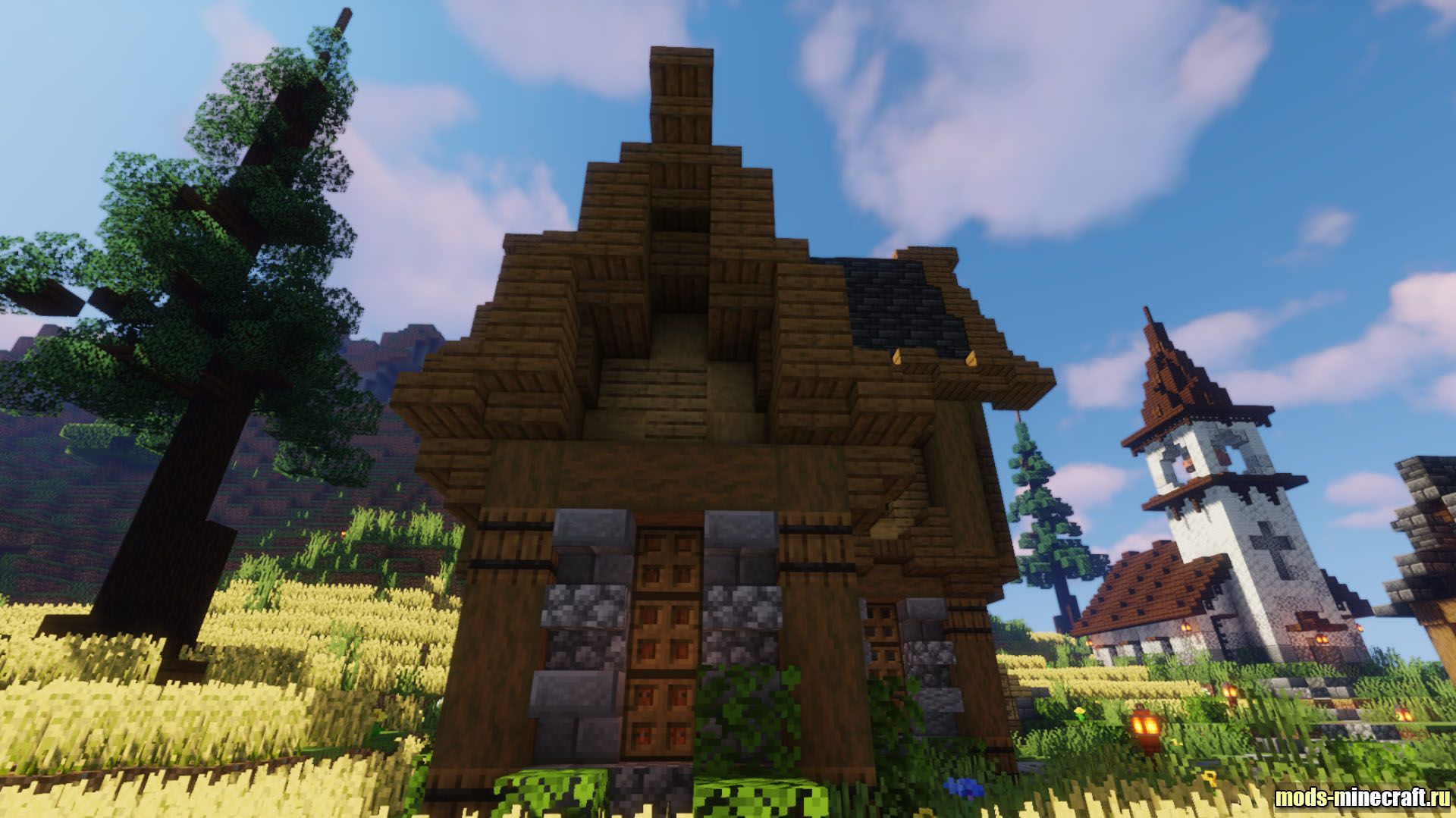 Узкие улочки ведут мимо фахверковых домов с тяжелыми балками и аккуратными крышами. За постройками раскинулись золотистые пшеничные поля, они оживляют пейзаж и добавляют локации глубины. Над деревней возвышается каменная башня церкви, с нее открывается отличный обзор на побережье и окрестные холмы, это удобно для ориентирования и начала выживания.