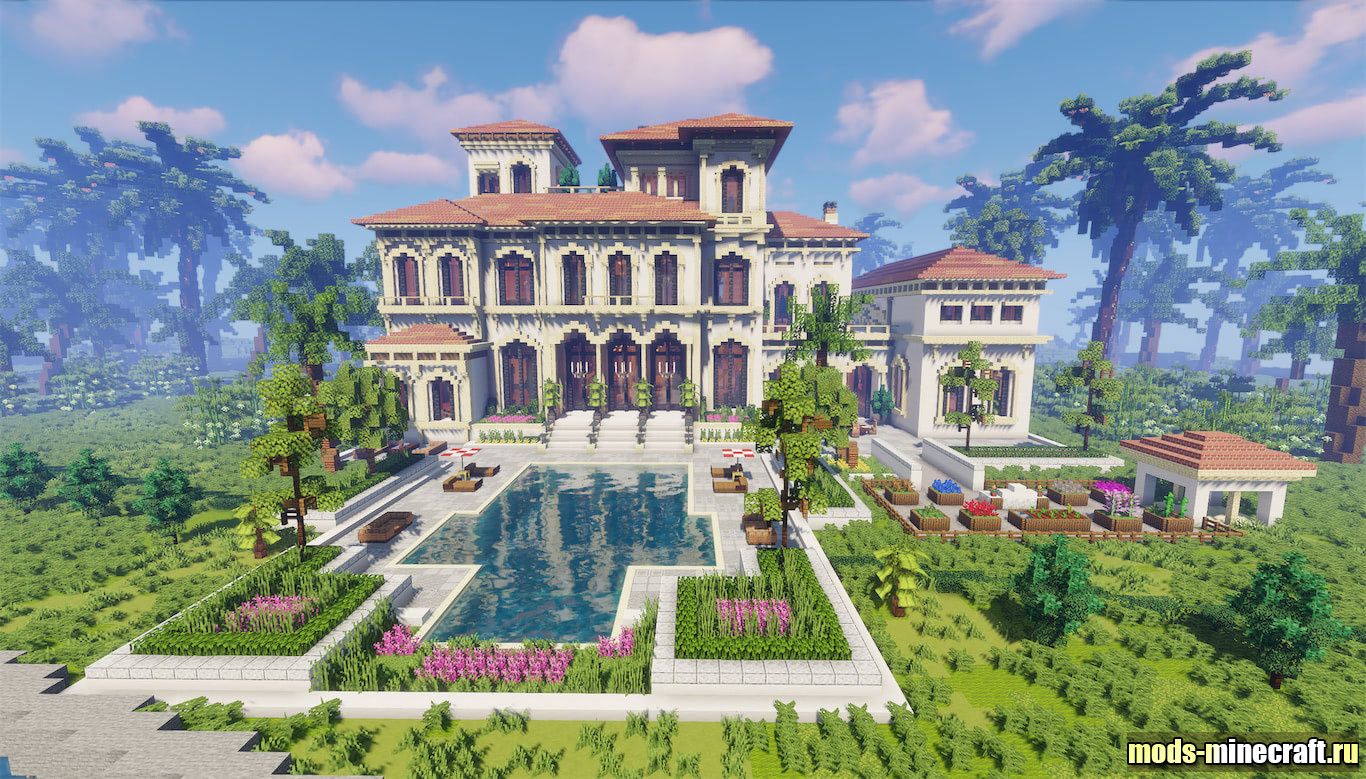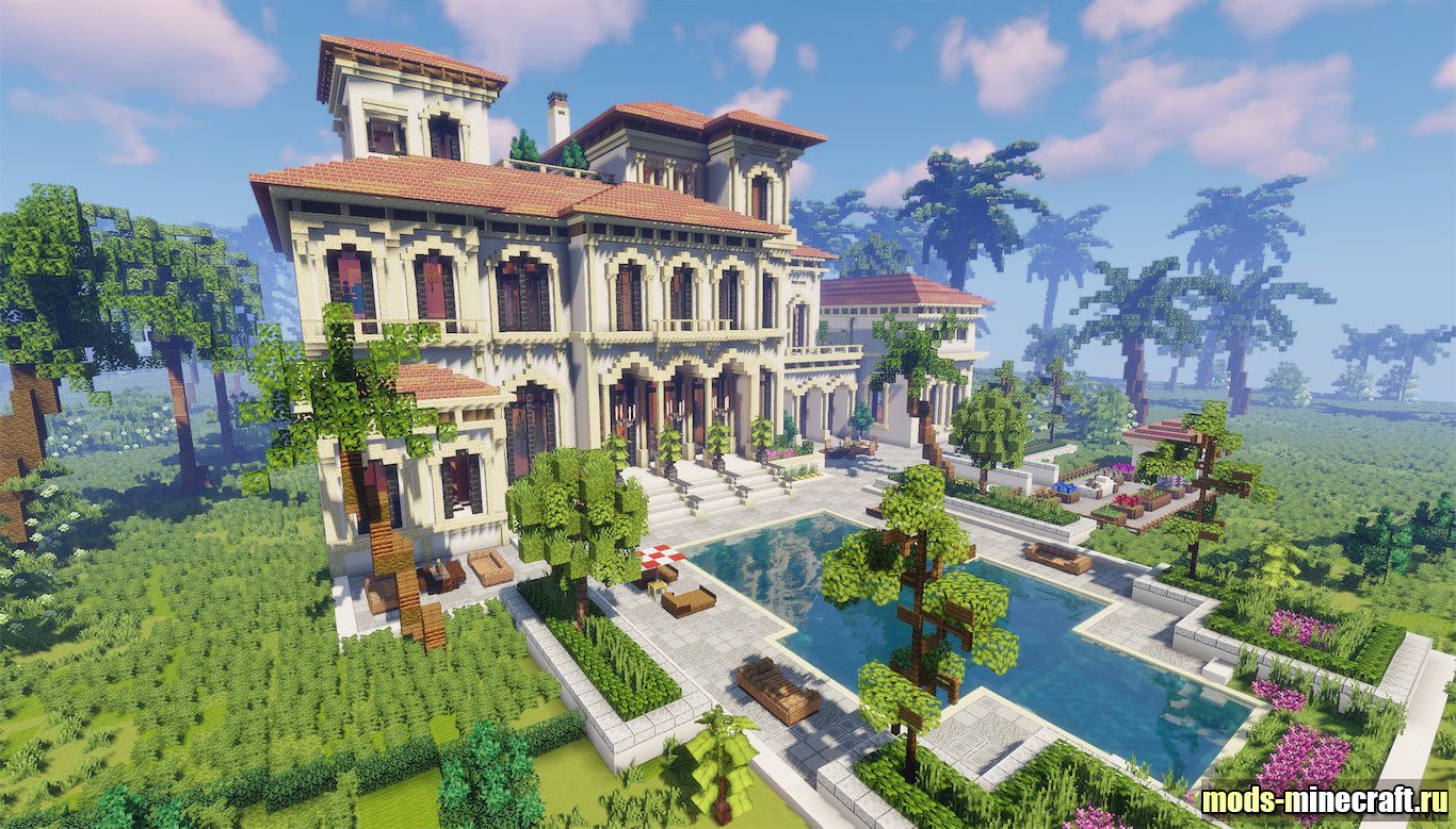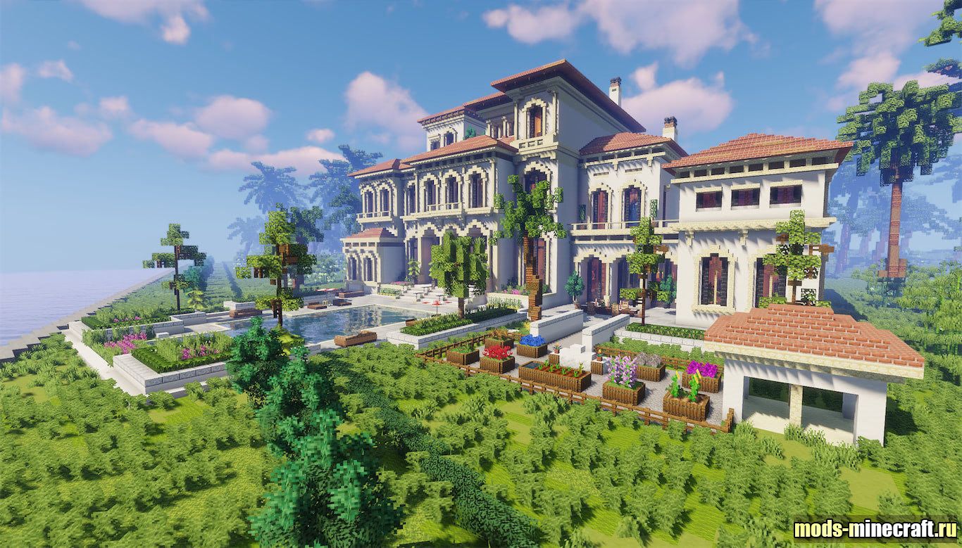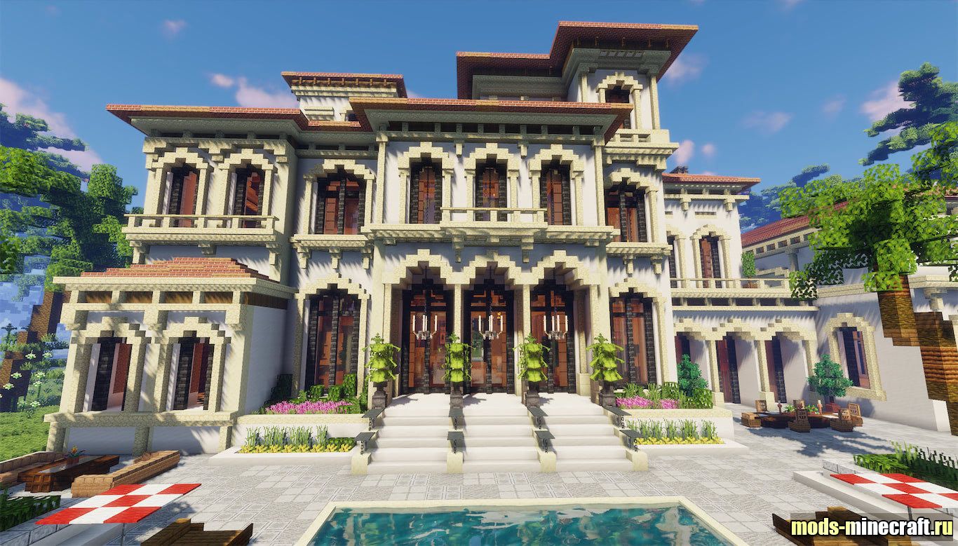 Внутреннее устройство дома продумано детально, он не выглядит пустым макетом и вполне подходит для комфортного выживания или отыгрыша ролей. Пространство организовано грамотно, комнаты логично связаны между собой и оставляют достаточно места для декора под свой вкус. Такая постройка хорошо работает как готовая база, она добавляет миру утонченности и избавляет от необходимости тратить часы на сложное проектирование с нуля.