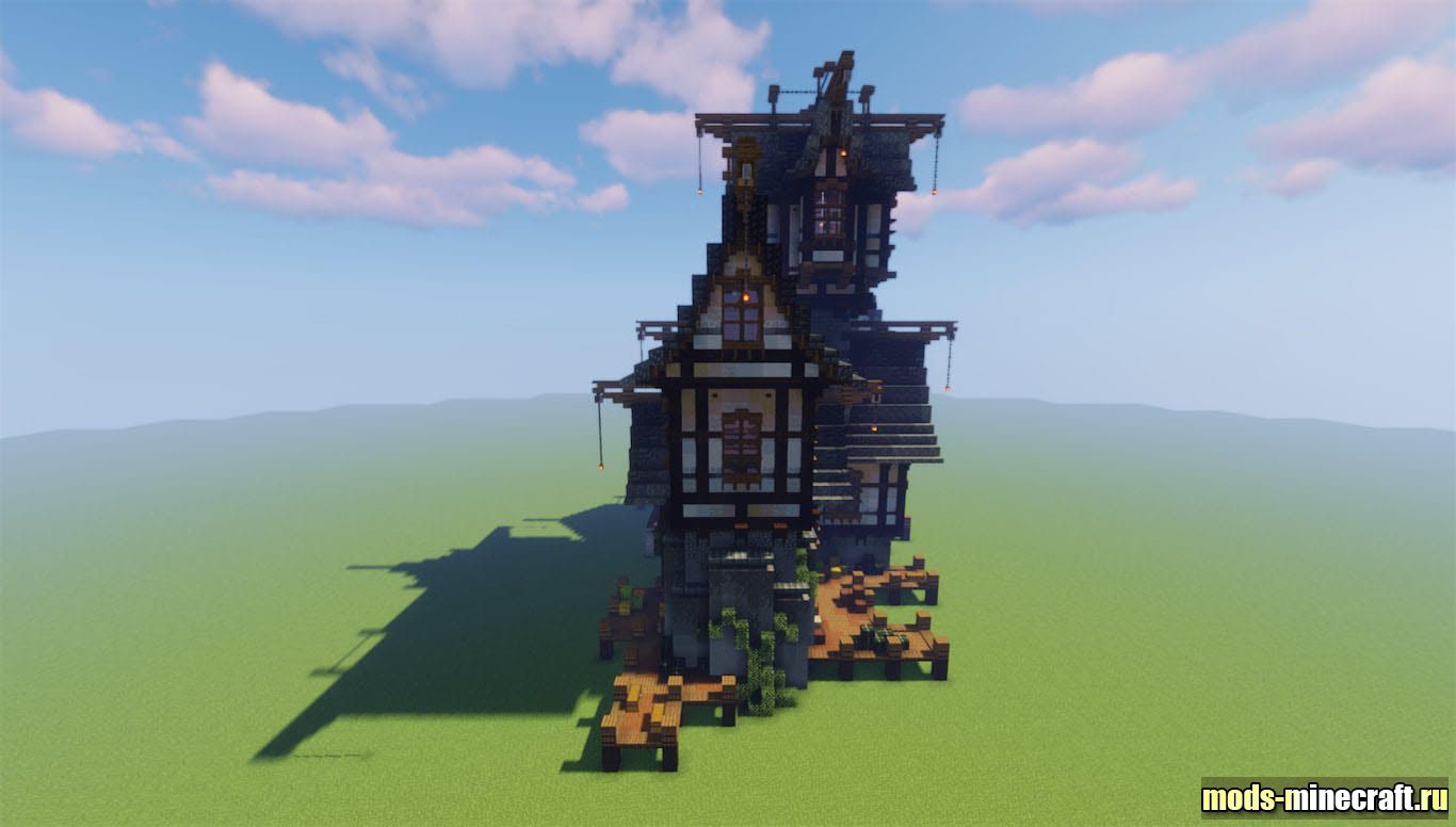 Эта карта станет находкой для любителей проработанной средневековой эстетики, здесь легко обустроить базу для выживания или центр ролевого сервера. Мрачноватая палитра и внимание к мелочам работают на создание густой атмосферы фэнтези, дом ощущается обжитым и готовым к заселению прямо сейчас.