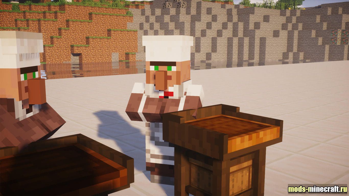Farmer’s Delight отлично расширяет кулинарию, но кухня часто кажется пустой без персонала. Аддон Delightful Chefs исправляет это и добавляет жизни в процесс готовки, вводя шесть новых профессий для жителей. Теперь достаточно поставить нужный блок, чтобы безработный селянин нашел свое призвание и начал торговать полезными ресурсами. Это превращает обычную деревню в настоящий гастрономический центр, где каждый занят своим делом на закрепленном рабочем месте.