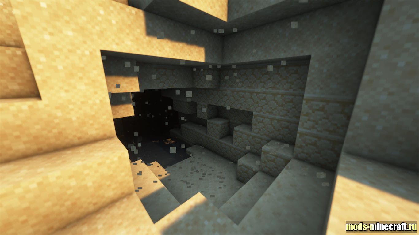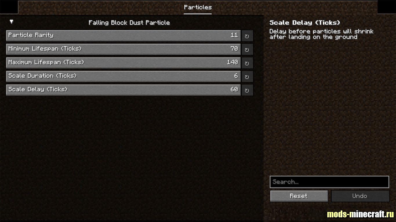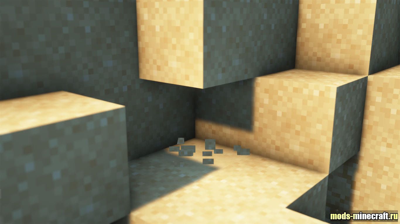 Мод Better Falling Block Particles меняет восприятие таких зон, добавляя визуальные эффекты к зависшим в пустоте сыпучим материалам вроде гравия или песка. Нестабильные блоки начинают слегка осыпаться и испускать частицы, что сразу выдает их положение и предупреждает о возможном падении при приближении. Это добавляет окружению немного динамики и позволяет заранее заметить опасные места, а интенсивность эффектов легко настраивается через привычное меню конфигурации.