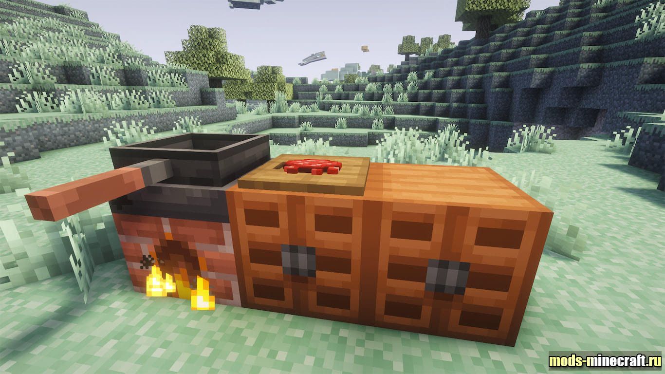 Это же стремление к уместности видно и в деталях для строителей и любителей порядка, модификация добавляет декоративные блоки, с которыми проще собирать уютные кухни прямо в облаках. Такая база особенно хорошо работает благодаря совместимости с другими дополнениями для Эфира, интеграция проходит ровно, а рецепты качества жизни заметно разгружают рутину. В итоге, если вы собираете сборку или просто хотите оживить выживание в раю, этот кулинарный аддон становится спокойным расширением общего приключения, без лишнего шума и без попыток перетянуть внимание на себя.