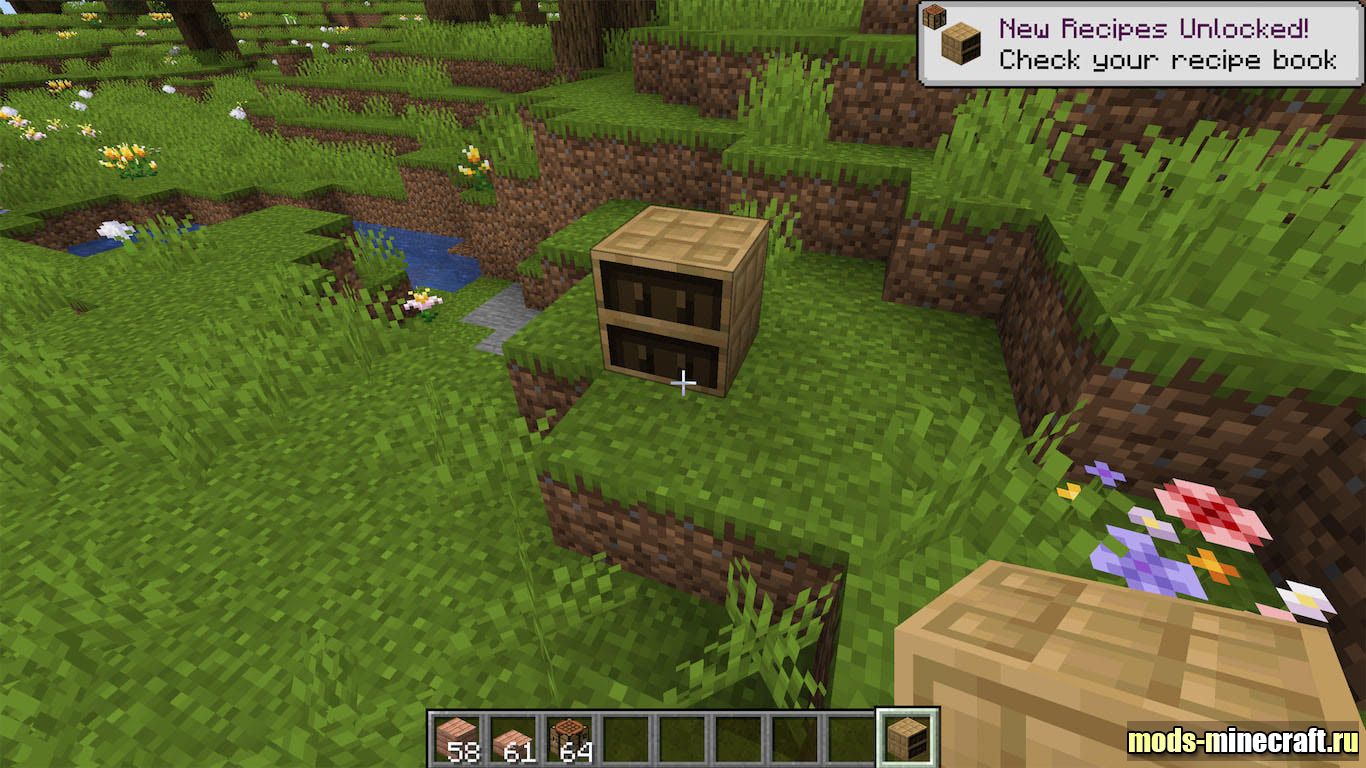Из за этого любые доски и бревна из биомного мода начинают нормально участвовать в создании инструментов, мебели и декоративных блоков. Исправление включается само, так что можно сразу идти к верстаку и собирать нужные предметы из любых доступных пород дерева, не опасаясь, что в последний момент рецепт окажется недоступным.