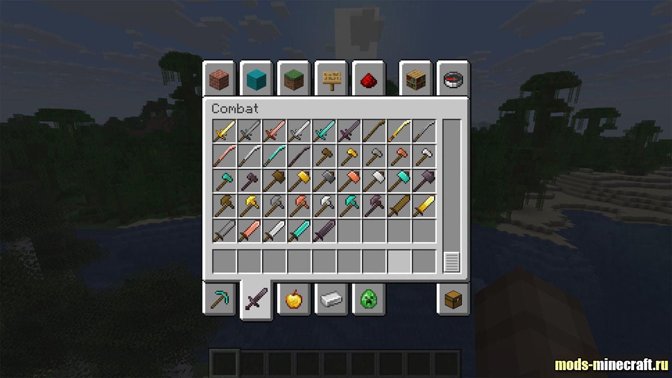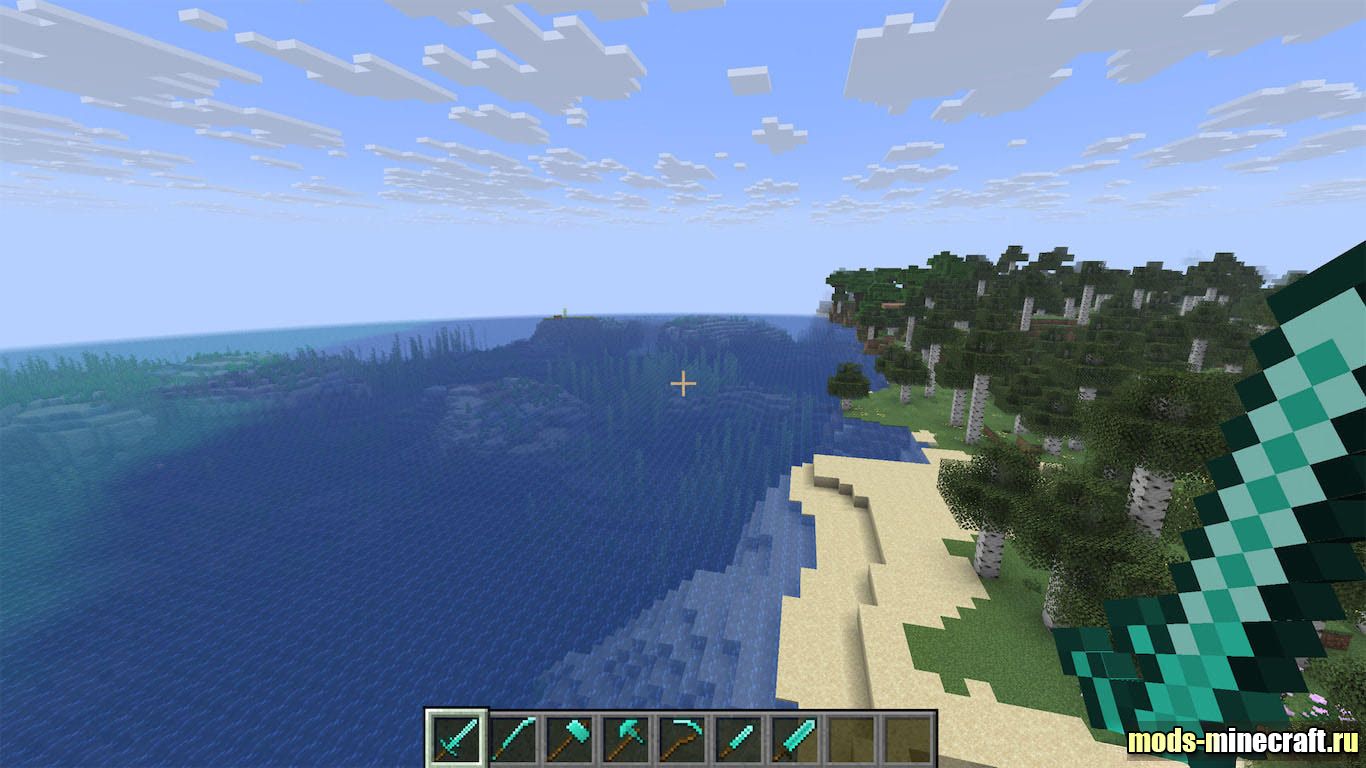 Weapons Expanded меняет привычный ритм сражений, предлагая внушительный арсенал вместо стандартного меча. Здесь можно взять в руки быструю катану или огромный двуручный меч, который хоть и запрещает использование щита во второй руке, зато наносит колоссальный урон, и на этом выборе темп боя начинает ощущаться иначе. Когда нужен не разгон, а давление, выручает молот, он оглушает врага даже через блок, а если важнее держать дистанцию по времени между ударами, в ход идут легкие серпы и тесаки, которые берут скоростью. Логику раннего выживания поддерживает рогатка, она стреляет обычным булыжником и поэтому особенно полезна в самом начале, когда стрелы ещё в дефиците, и именно этот дефицит хорошо связывает оружие с тем, как меняется тактика.