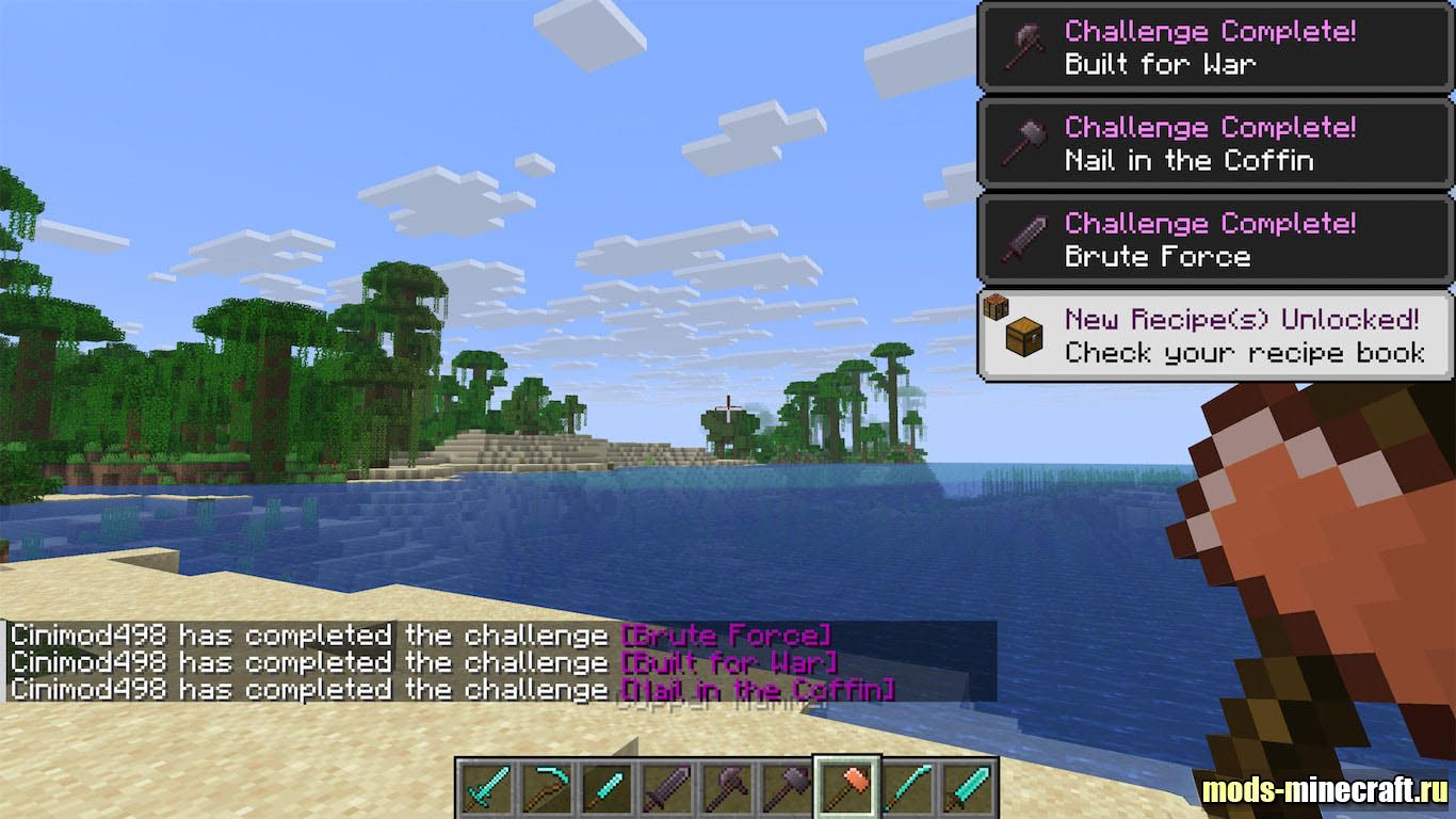 Тактика продолжается не только выбором железа, её доводят до формы уникальные зачарования, которые подстраивают бой под разных мобов. Можно наложить на клинок иссушение или отравление, но заметнее всего работает обморожение, оно замедляет противника и наносит урон холодом, словно он попал в рыхлый снег, и это замедление естественно подводит к роли дальников. Стрелкам доступна взрывная магия для луков, она превращает обычную перестрелку в небольшую канонаду, а дальше игра закрепляет интерес к экспериментам. За изучение каждого нового вида оружия, особенно из незерита, игра награждает специальными достижениями, подталкивая пробовать разные стили и искать баланс между скоростью и силой удара.