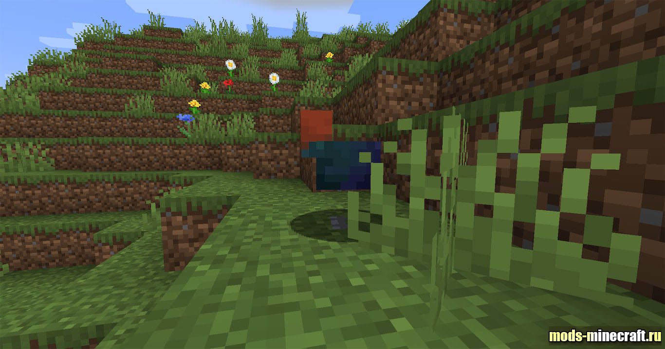 Derec’s Earth Mobs меняет привычный вид фермы и дикой природы, добавляя вариативность уже знакомым животным. Свиньи теперь встречаются перепачканными в грязи, грибные курицы позволяют срезать с себя грибы, а цветочные коровы оставляют за собой яркий след из растений. Рогатые овцы перестают быть просто источником шерсти и могут боднуть в ответ на агрессию, тогда как редкие радужные особи становятся трофеем для исследователя, и после дневных открытий особенно заметно, как иначе начинает звучать темнота.