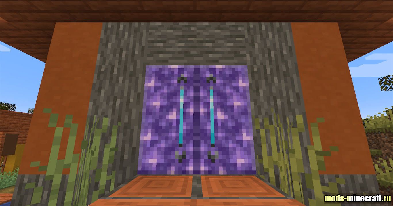 Когда проходы выглядят как часть стены, маскировка базы становится заметно проще, потому что текстуры створок в точности повторяют природный ландшафт. Потайные ходы в горных убежищах исчезают на фоне гладкого камня, булыжника или глубинного сланца, а пустынные аванпосты получают песчаниковые варианты, растворяющиеся в окружении. Ту же задачу в других измерениях решают варианты из базальта, пурпура и незерского кирпича, чтобы постройки не выбивались из мрачной атмосферы Незера и Энда. И уже внутри, на том же принципе совпадения фактур, книжная полка превращается в скрытую дверь для библиотеки, а аметист или губка дают неожиданные поверхности для более смелых решений.