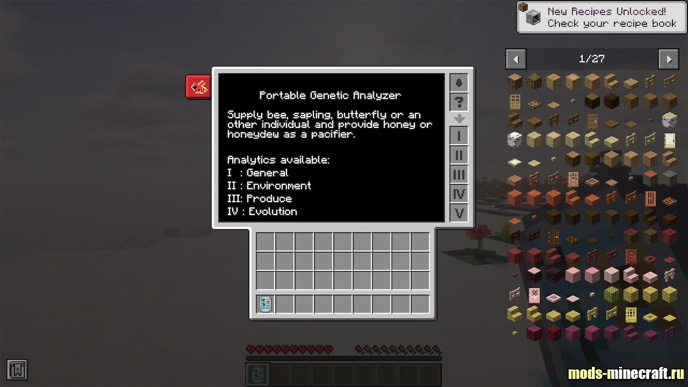 Forestry Community Edition добавляет в Minecraft целый пласт механик, связанных с живой природой. Пчёлы, деревья, бабочки, каждый вид можно находить, скрещивать, выводить новые породы и подвиды. Генетика тут работает не для галочки, у пчёл и деревьев есть реальные признаки, которые передаются потомству и влияют на результат. Когда впервые получаешь редкий гибрид после десятка попыток, это ощущается как маленькое открытие.