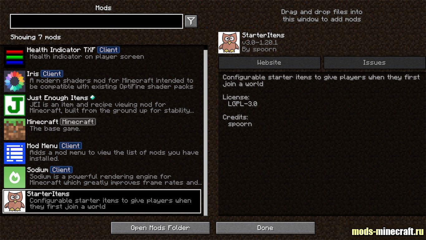 Как установить Starter Items