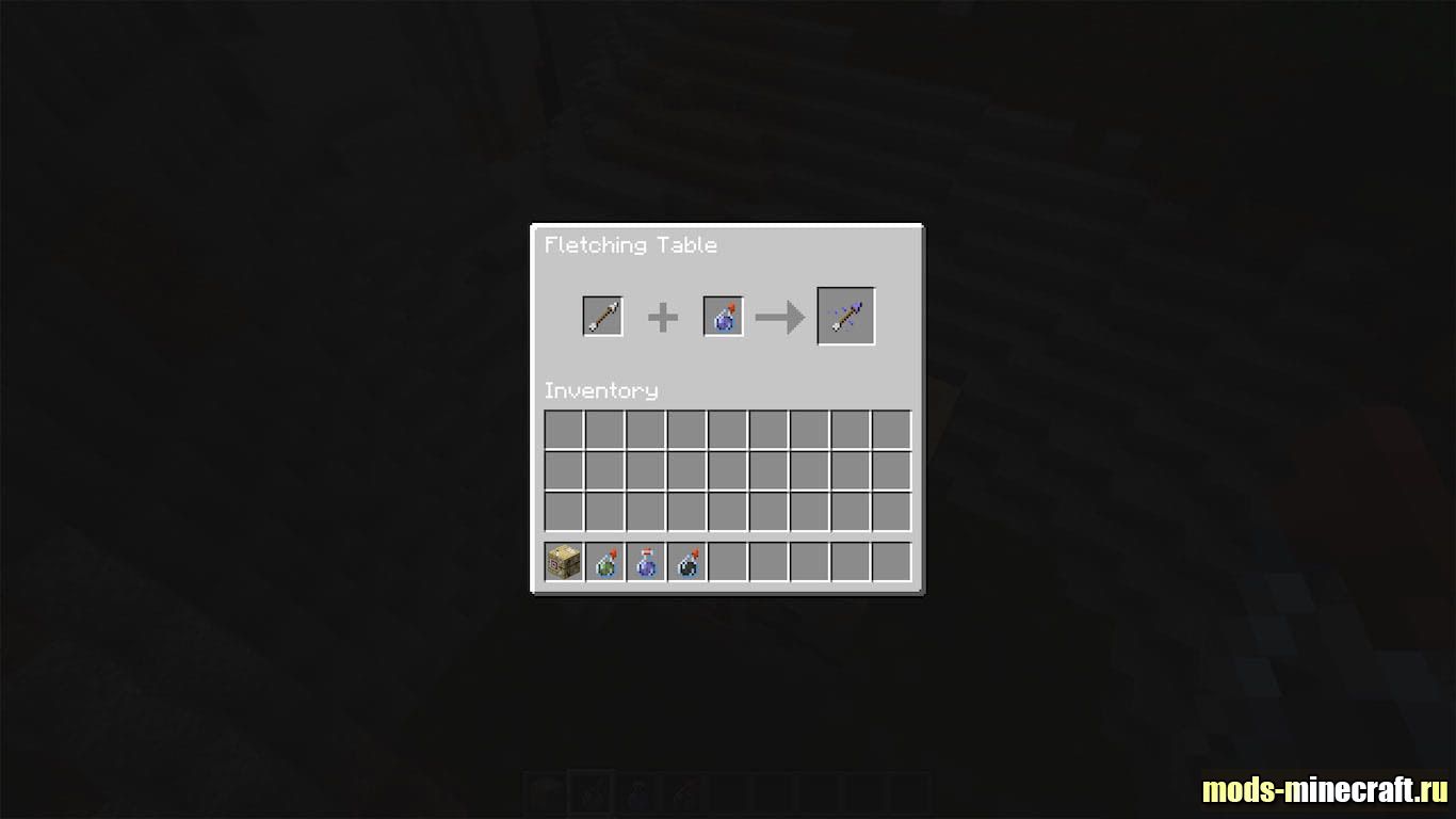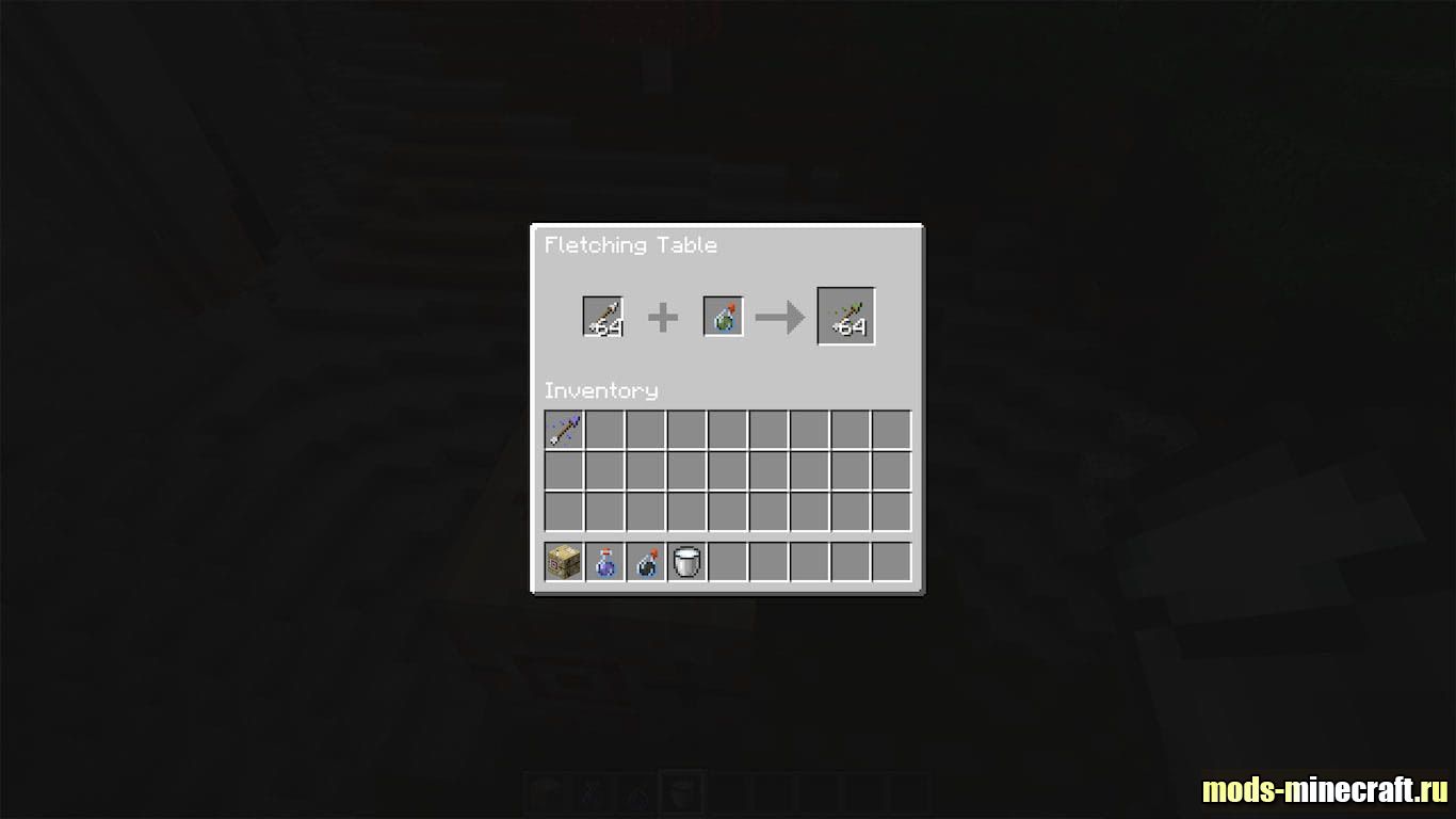 На практике это меняет подход к подготовке перед боем. Раньше крафт отравленных или замедляющих стрел через котёл казался слишком муторным, и большинство просто забивало на это. Теперь достаточно одного затяжного зелья и пачки стрел, чтобы собрать себе арсенал за пару секунд. Особенно чувствуется разница, когда готовишься к рейду или идёшь на Эндер Дракона с запасом стрел урона.