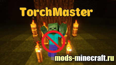 TorchMaster добавит 3 источника света, которые запрещают спавн мобов в определенном радиусе, TorchMaster облегчает выживание в игре, добавляет специальный факел запрещающий появление мобов в радиусе 32 блоков, лампы Dread и Terrain запретят нерест мобов в