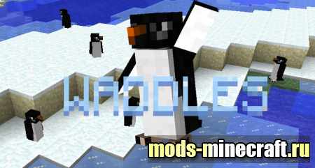 Waddles - мод на прикольных пингвинов, с характерными звуками и милой походкой, приятно когда пингдвины бродят рядом с нами, они создают прекрасную атмосферу в снежных биомах, Снежной Тундре и на ледяных берегах. В новых версиях мода у пингвинов появится
