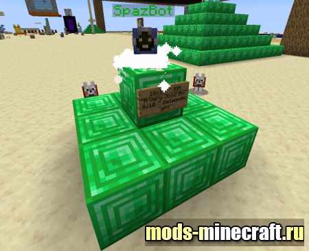 SpazBot добавит контролируемого робота, который будет вашим верным спутником в любых путешествиях. Призвать возможно только с помощью команды /function spazbot:give_spazbot.