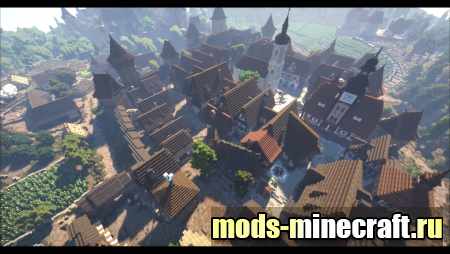 Rich Medieval Town типичный средневековый городишко с красивой архитектурой, который огражден высокой каменной стеной от внешнего мира. С картой рекомендуется установить реалистичный текстур пак Conquest Reforged для полного погружения в атмосферу.