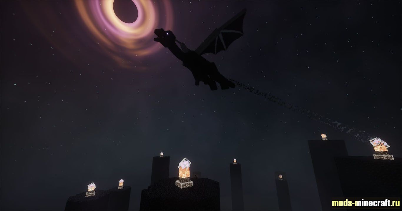 Hysteria меняет картинку в Minecraft через свет, тени и отражения на воде. Картинка становится живее, заметнее играют блики и глубина сцен. Этот набор даёт мрачный атмосферный тон, идеально подходящий для хоррор и зомби сборок. Я быстро привык держать факелы под рукой, ведь темно не только ночью, в Нижнем мире и в Крае света её ещё больше.