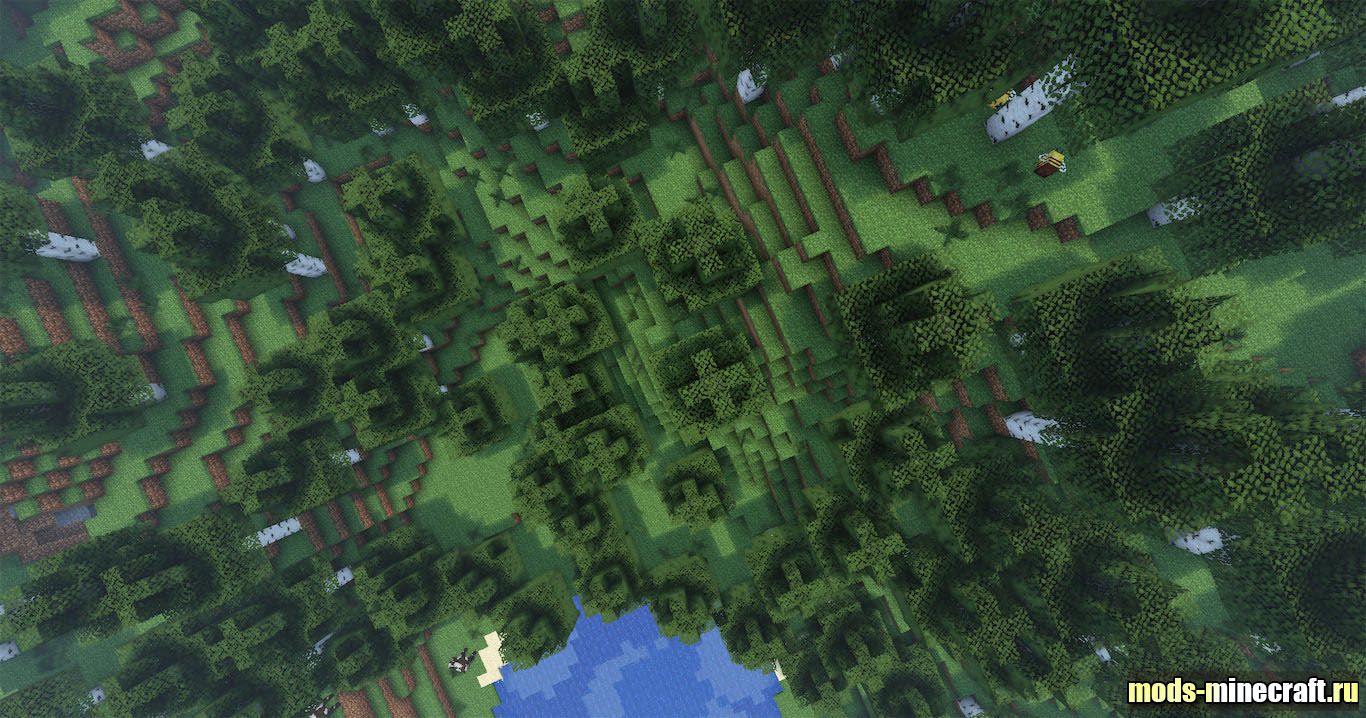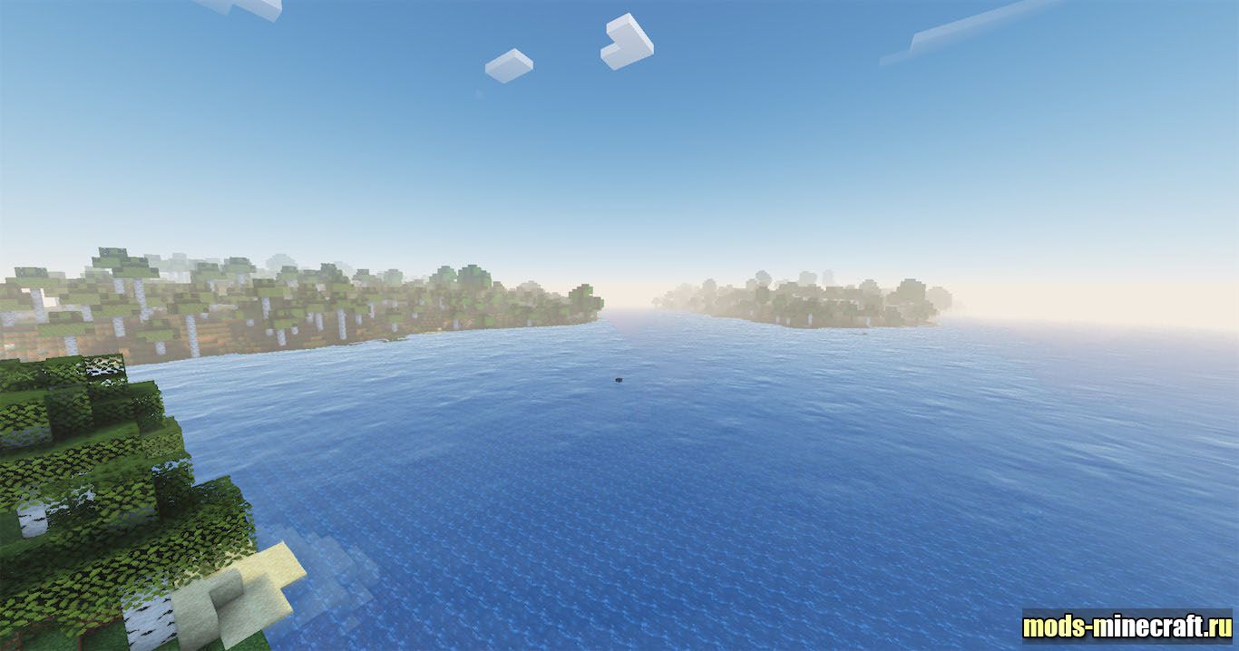 Monophonic Shaderpack добавляет в игру тени в экранном пространстве и мягкий настраиваемый туман. Растительность и листва на деревьях начинают плавно двигаться, создавая эффект ветра. Программа корректно работает со стандартными облаками, сохраняя привычный вид квадратного неба, а вода поддерживает карты нормалей из сторонних ресурспаков для отображения рельефных бликов на поверхности.