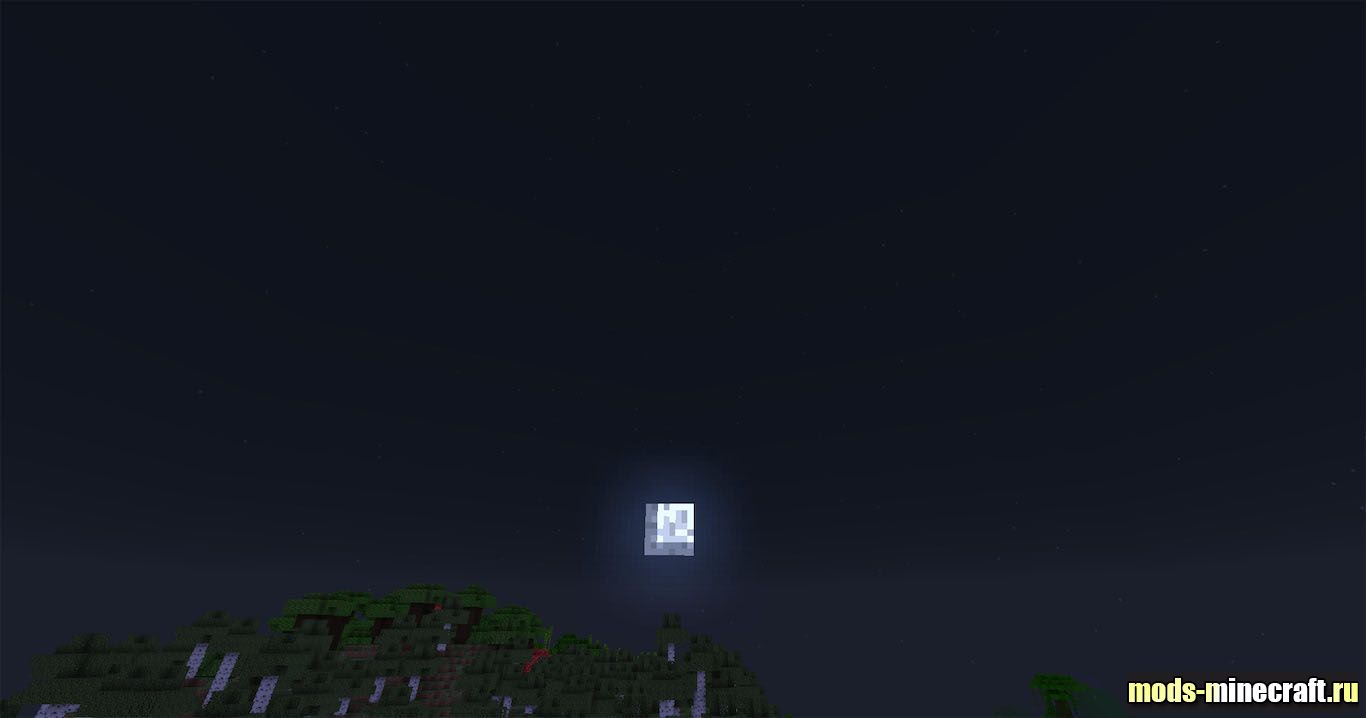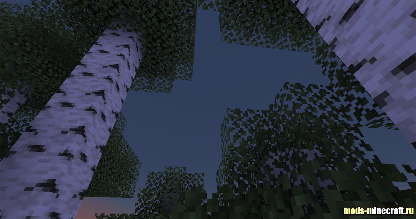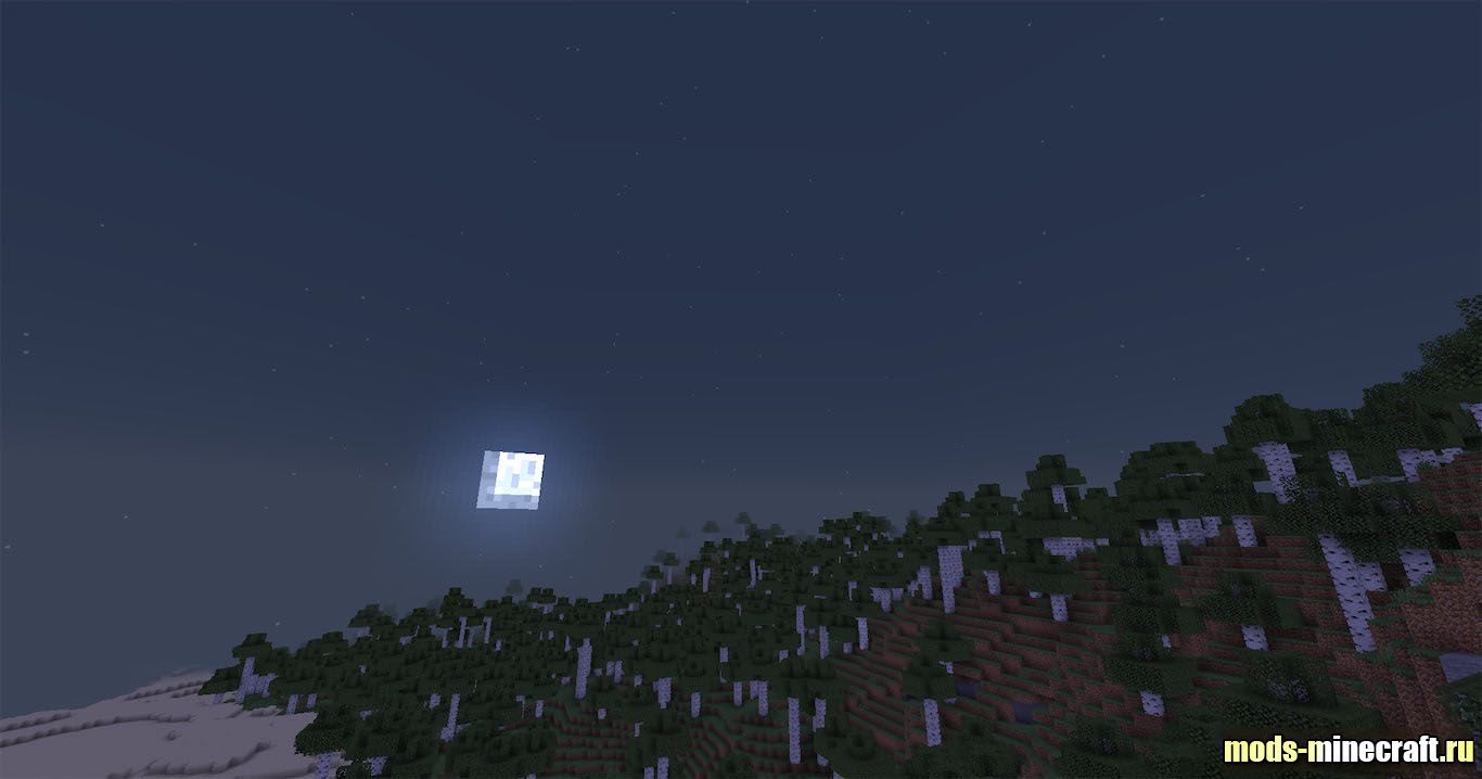 Ночное небо в игре перестает быть просто темным фоном с редкими блеклыми квадратами. Шейдер делает точки на небосводе более выраженными и чистыми, каждая звезда теперь светит ярко, четко выделяясь на фоне темноты. Их света достаточно, чтобы различать очертания ландшафта в сумерках.