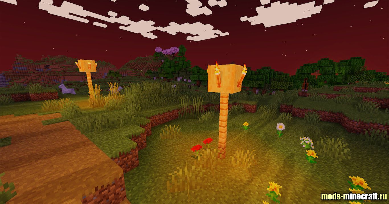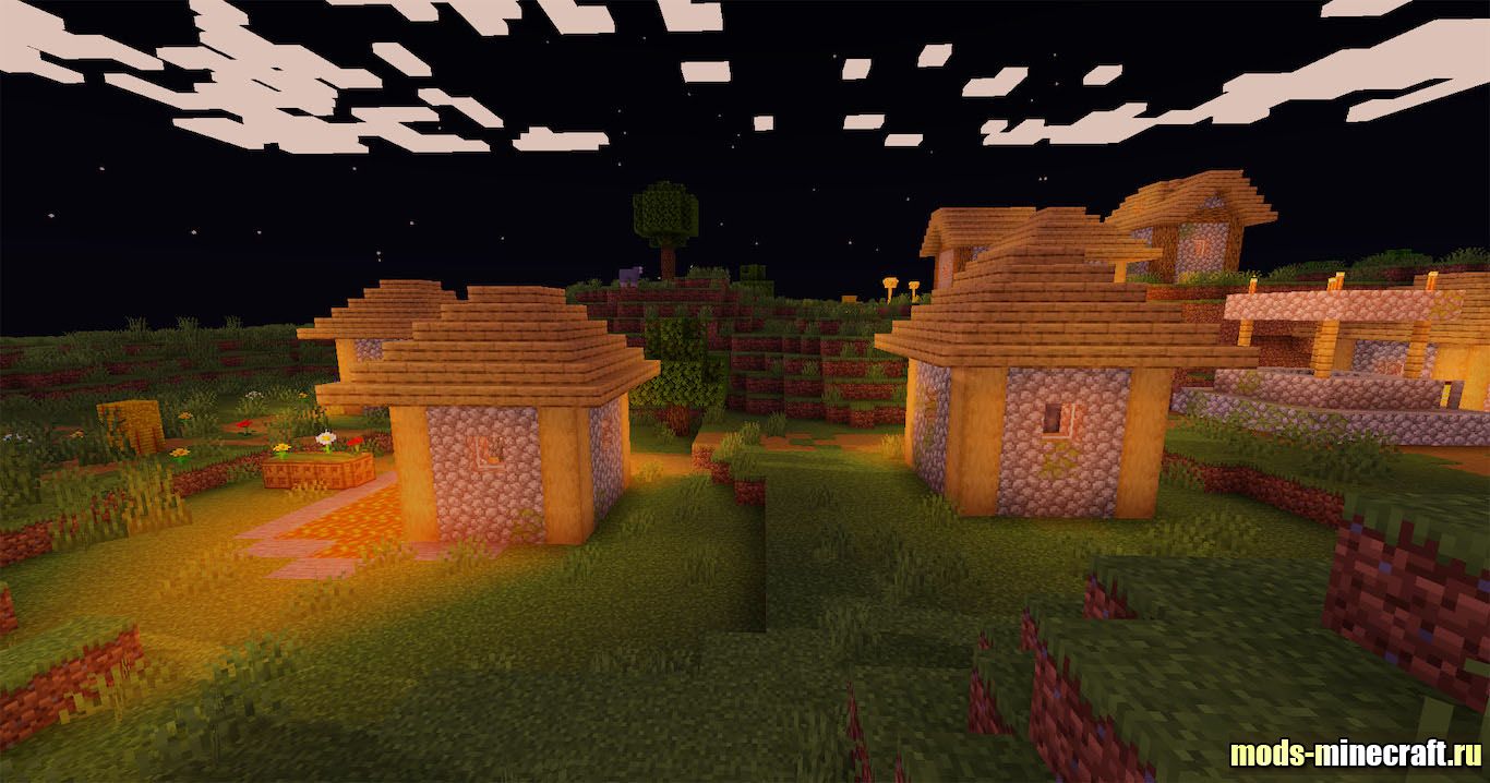 Glacier меняет привычное освещение, делая его мягким и естественным. Солнечные лучи теперь аккуратно ложатся на блоки, а тени плавно рассеиваются под кронами деревьев. В сумерках мир наполняется глубокими цветами, сохраняя при этом узнаваемую стилистику.