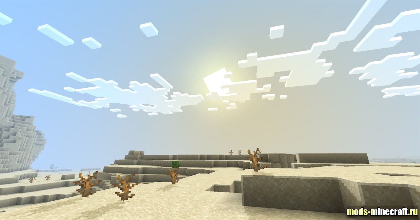Voxel Vibes Shaders делает картинку в Minecraft чище и собраннее. Тени становятся резче и читаемее, края блоков и объектов видны яснее, особенно на рассвете и в закате. Небо выглядит глубже, облака и оттенки горизонта различаются лучше, и мир меньше похож на плоскую картинку.
