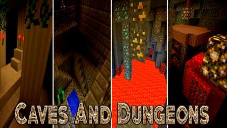 Мод добавляет десять данжи структур и заброшенную шахту в нижнем мире. Подземные исследования данжи, будут более чем интересны, в них будет полно ископаемых и ценных руд. Caves And Dungeons генерирует: 1. Грибную пещеру, состоящую из грибных деревьев и