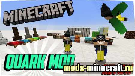 Многомодульный мод Quark - самый разносторонний мод в Майнкрафт. В моде улучшенная игровая механика, продвинутая анимация эмоций, игрок может садится на ступеньки, махать руками и крутить головой, полная автоматизация механизмов позволяет упрощать некогда