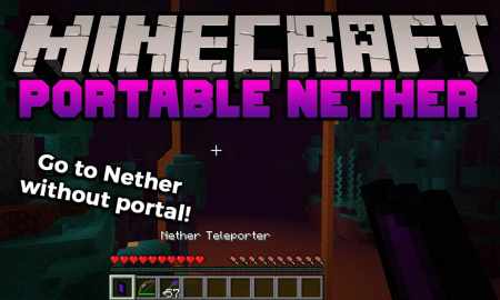 Portable Nether добавляет переносной портал в Пустоту и магическую стрелу телепорта. Переносной портал можно носить в инвентаре и устанавливать его по необходимости. Как и обычный портал в ад, портативный портал легко и быстро телепортирует в нижний мир и