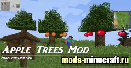 Apple Trees дает возможность выращивать яблоки и создавать яблоневый сад. Совместив саженец дуба с яблоком вы получите саженец яблони, посадив яблоню можно постоянно собирать огромные урожаи и пополнять запасы еды. Яблоки в моде Apple Trees как и в