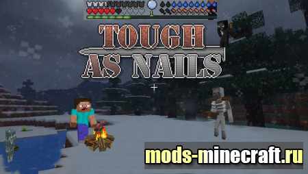 Tough As Nails предоставит максимально реалистичное выживание - Реальная жизнь в Minecraft, появится жажда, холод, потеря здоровья и температура тела, а в биомах времена года и смена сезонов, изменение цвета травы и листвы, жгучая жара летом и выпадение