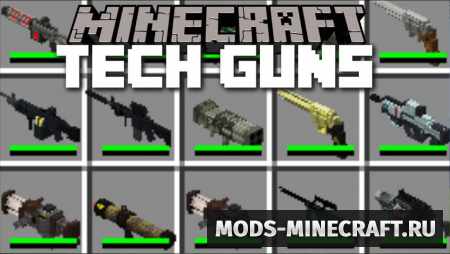 Мод Майнкрафт Techguns на оружие Огромное количество новейшего технологичного оружия и брони, в арсенале мода на Майнкрафт Techguns 3D модели всех типов автоматов, базуки, лазерные пушки, различное военное оборудование, обмундирование, NPC и многое,