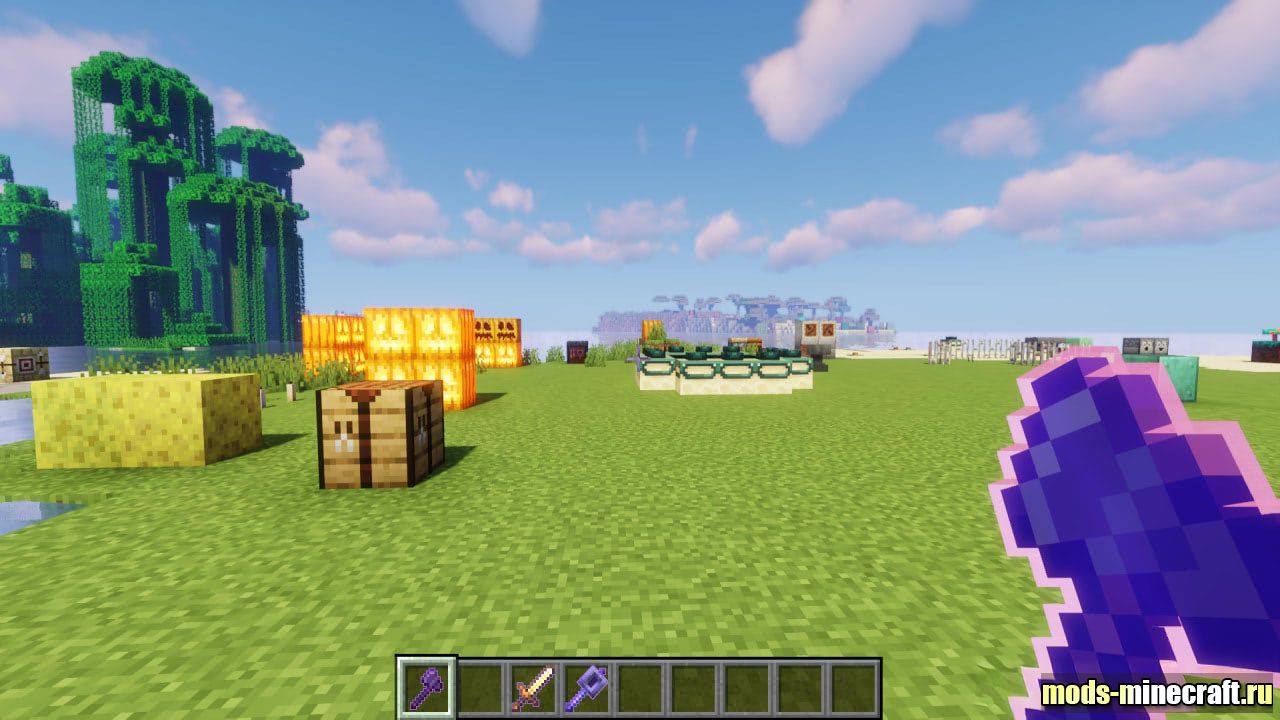Стандартный фиолетовый перелив зачарования часто теряется на фоне ярких блоков, но этот ресурспак кардинально меняет восприятие экипировки. Теперь любой зачарованный предмет, будь то алмазная кирка или незеритовый меч, получает выразительную светящуюся ауру и сразу выделяется в инвентаре. Это небольшое визуальное изменение заставляет привычные инструменты выглядеть действительно магическими и ценными, добавляя атмосферы во время долгих раскопок или ночной охоты.