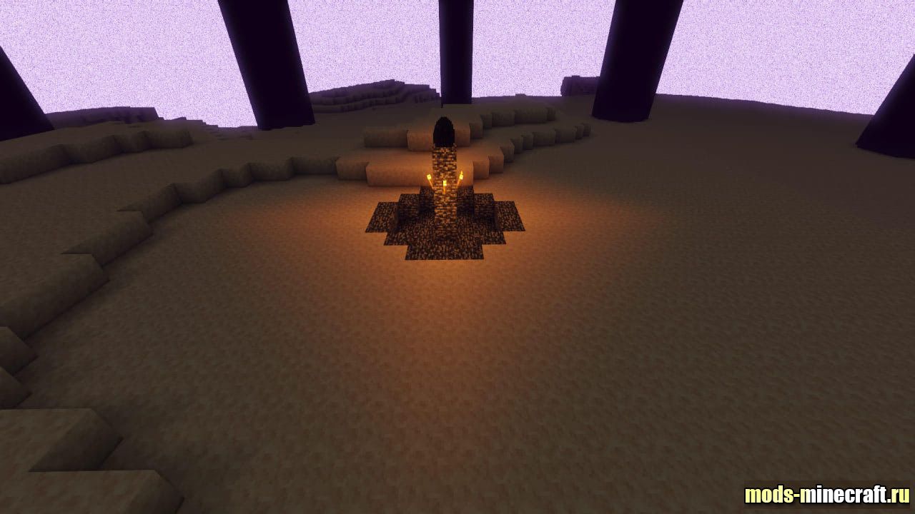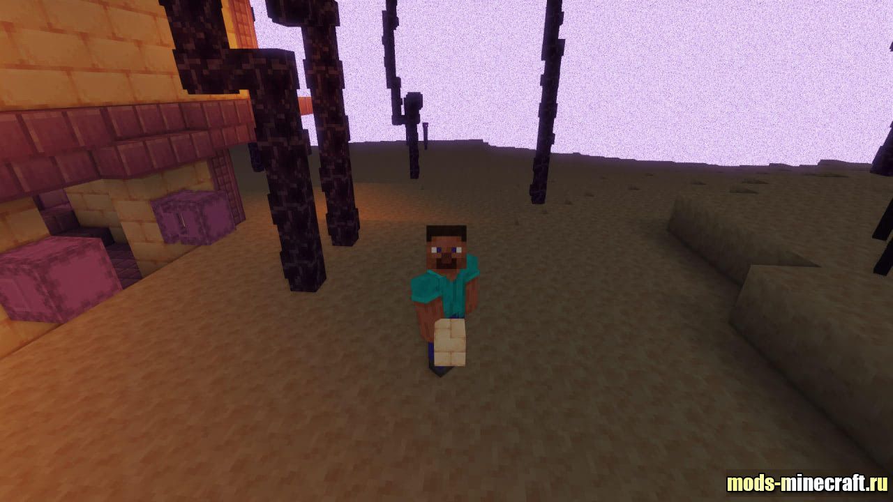 Изменения касаются только внешнего вида, поэтому физика и свойства материала остаются прежними, что удобно для привычной игры. Это отличное решение для тех, кто строит базы на парящих островах и хочет добавить постройкам немного сказочной атмосферы или легкой мечтательности. Обычные мосты и стены из эндерняка с таким цветом смотрятся куда более стильно и аккуратно, позволяя создавать уникальные проекты без установки сложных модификаций.
