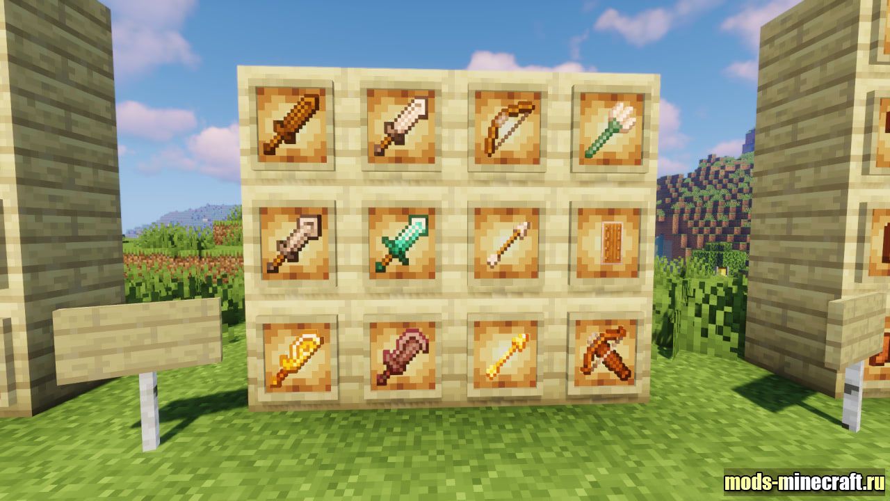 Fabulous 3D меняет привычный взгляд на инструменты и оружие превращая их из плоских картинок в осязаемые предметы. Теперь в руке лежит не просто рисунок а полноценная модель с видимой толщиной и гранями. Мечи и кирки сохраняют узнаваемый вид но ощущаются более тяжелыми и настоящими. Визуальный стиль остается верным оригиналу и новые формы смотрятся в мире игры совершенно естественно.