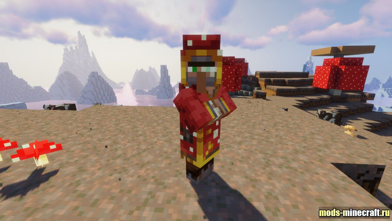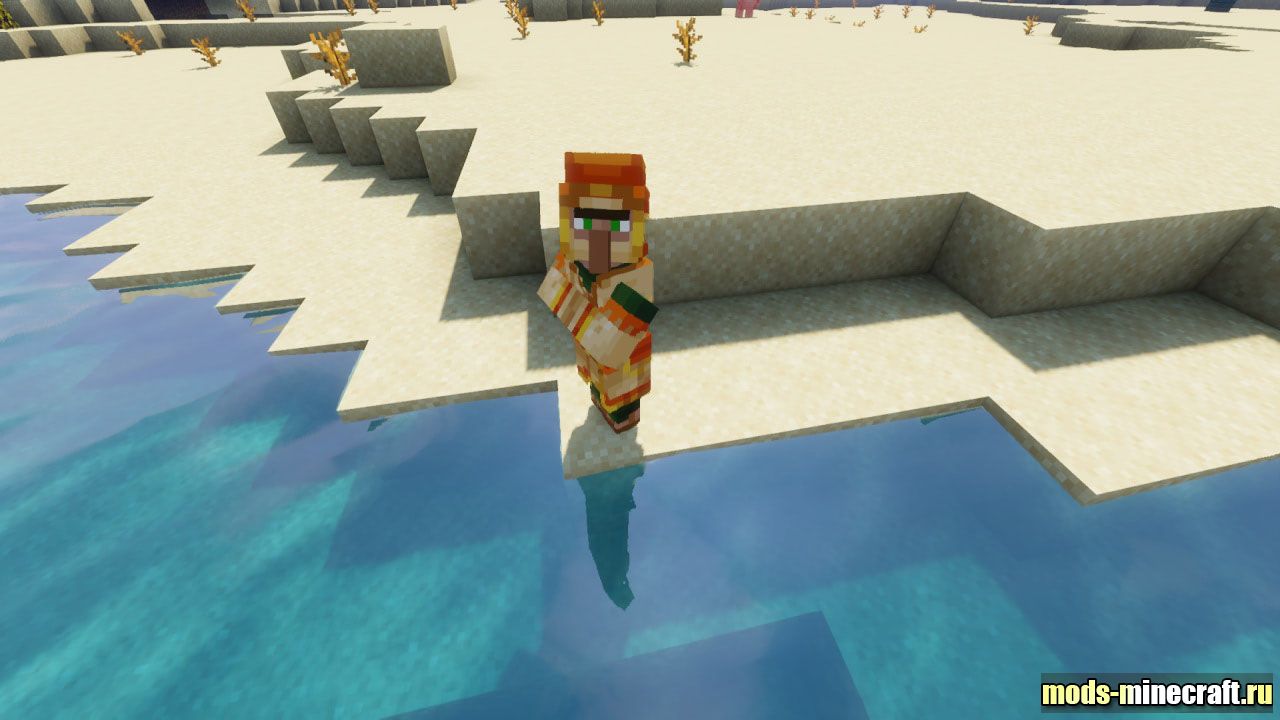 Biomes Wandering Traders ресурс пак меняет внешний вид странствующего торговца в зависимости от биома, где он появился. В одном мире я встречал одного и того же торговца в пустыне и в снежной тайге, и тут разница сразу читается по одежде и деталям модели, вместо одинакового облика на любой карте.