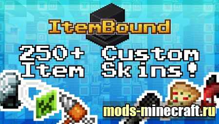 ItemBound добавляет новые предметы с возможностью изменять их внешний вид на свое усмотрение, ItemBound славится своим разнообразием текстур ко всем элементам, на данный момент текстур пак ItemBound имеет более 1600 лучших скинов к различным предметам,